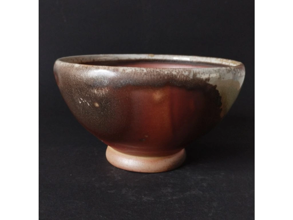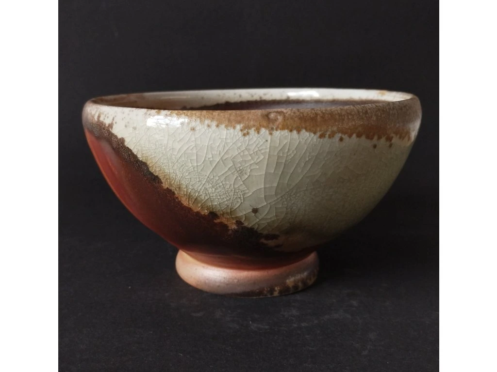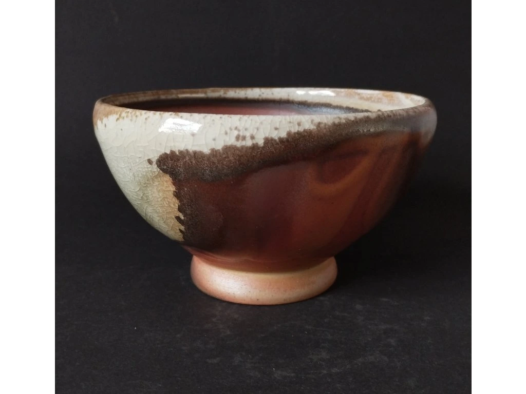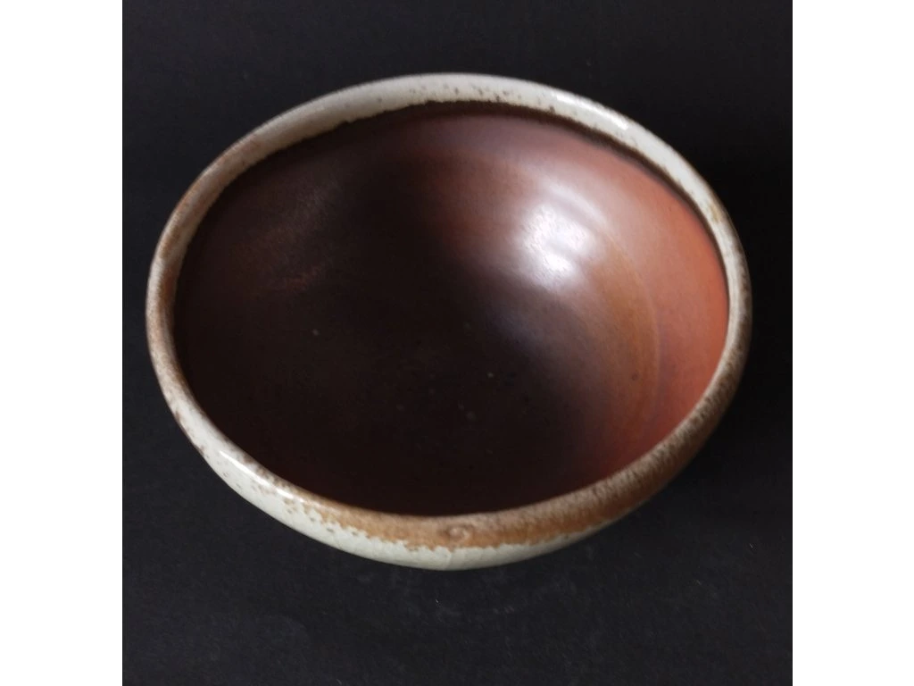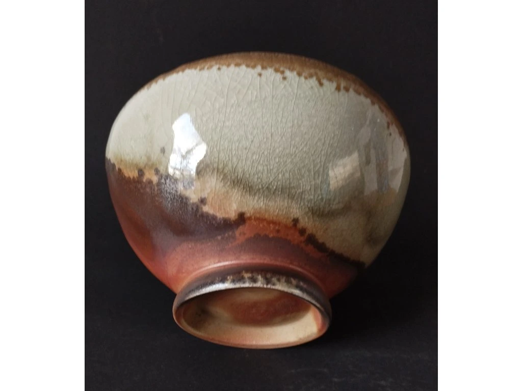 Miska pálená v dřevem otápěné peci zvané ANAGAMA, vyniká nádhernou barevností díky hojně nalétanému popelu během výpalu.